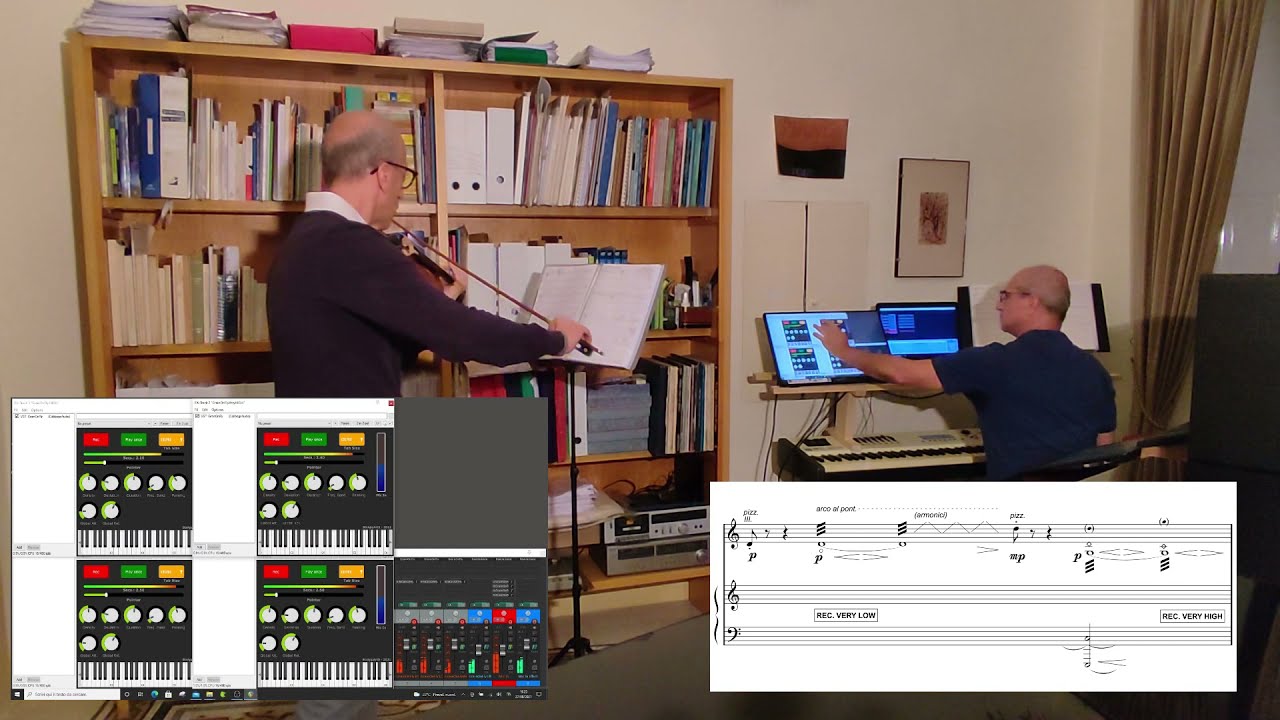 If you read in the keyboard part “REC. LOW” (written in a box frame), you have to record the simoultaneous violin sound in the specific GrainOnFly track.